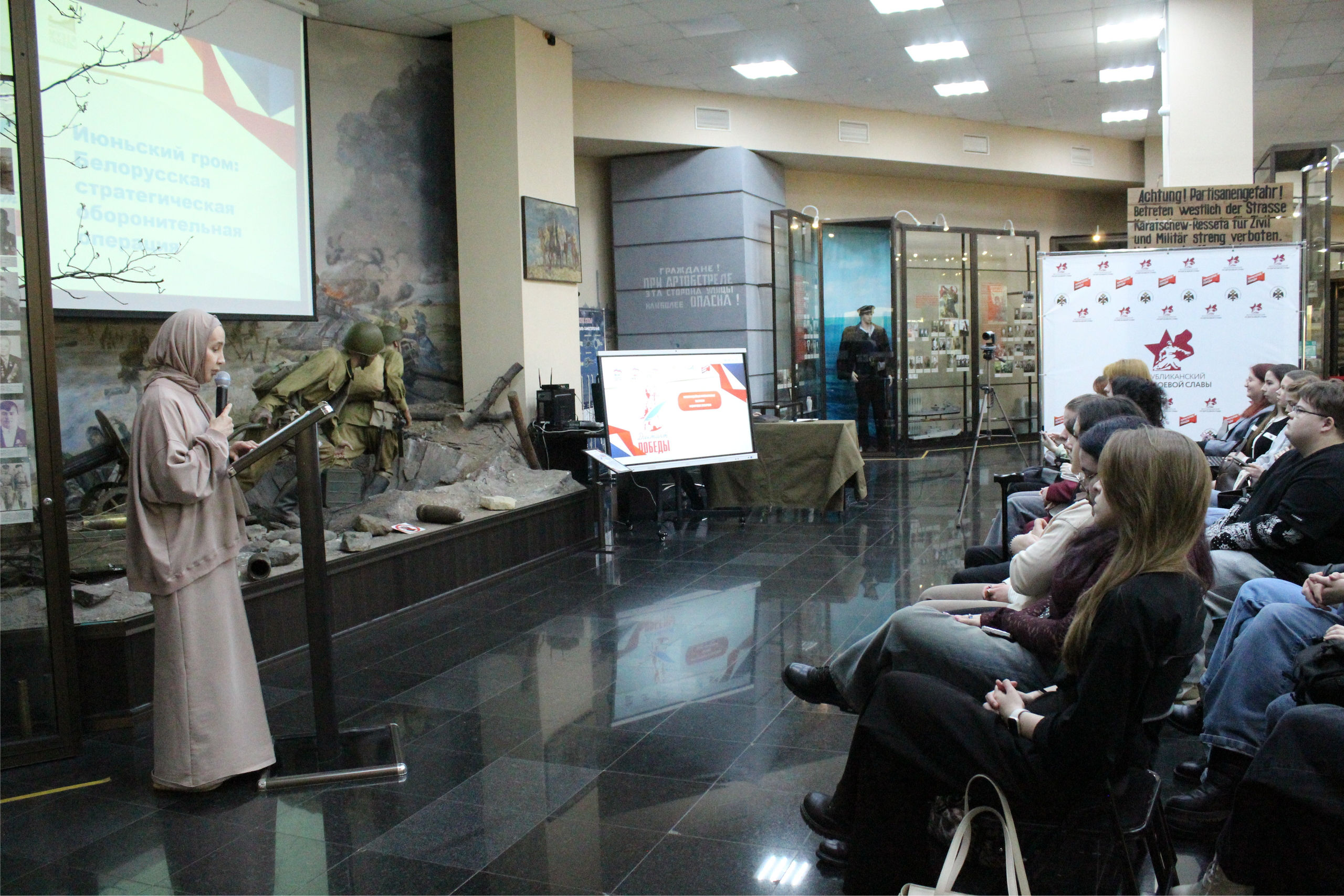 В Республиканском музее Боевой Славы в рамках подготовки к Международной патриотической акции «Диктант Победы» прошел первый открытый лекторий «Июньский гром: Белорусская стратегическая операция».