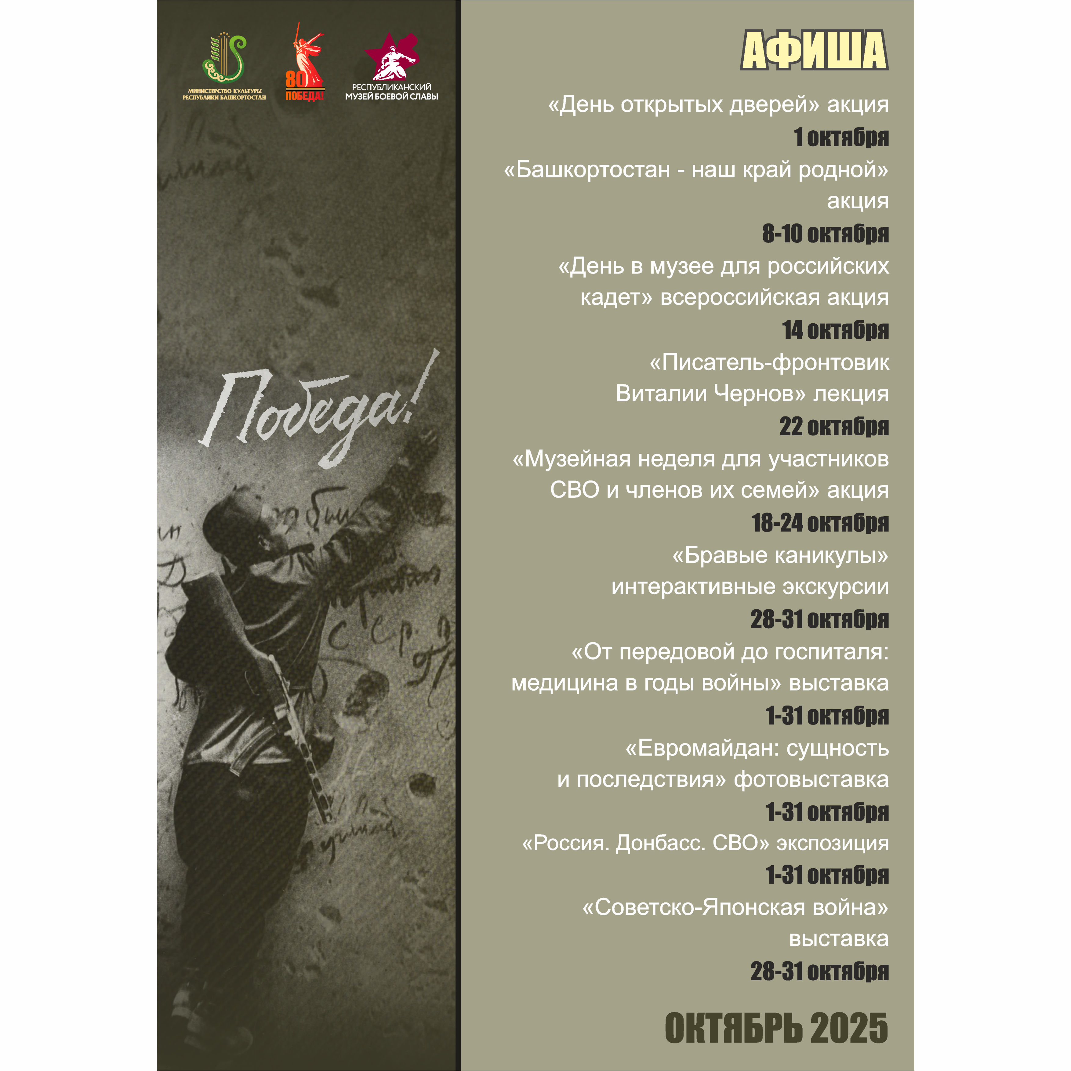 Республиканский музей Боевой Славы приглашает посетителей на мероприятия в октябре