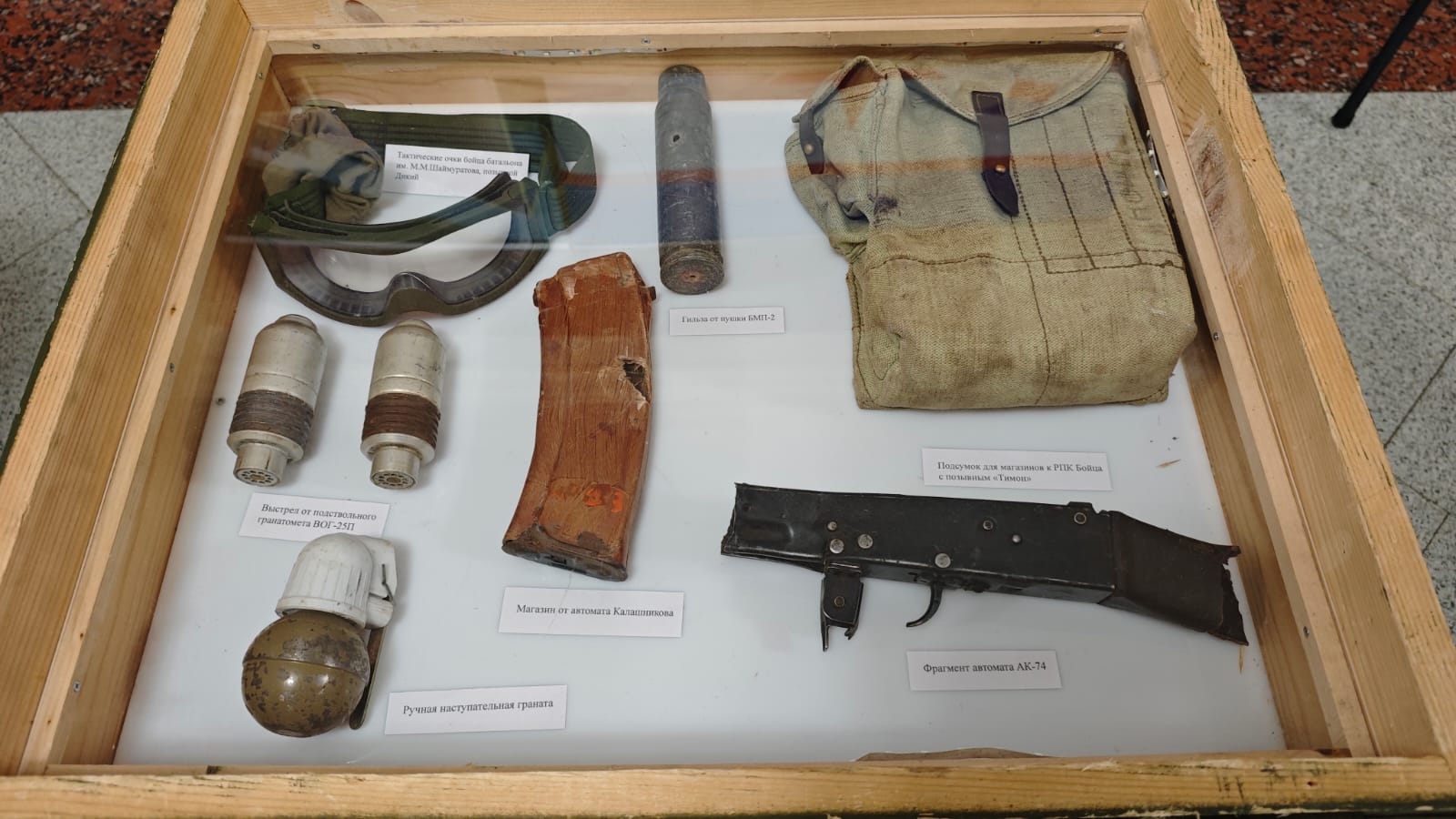 Кроме этого, на выставках были представлены предметы в стилизованных ящиках, в том числе БПЛА, привезенные из зоны боевых действий бойцами СВО, а также личные вещи ребят, и трофейные экспонаты, переданные в фонд музея Боевой Славы участниками СВО.