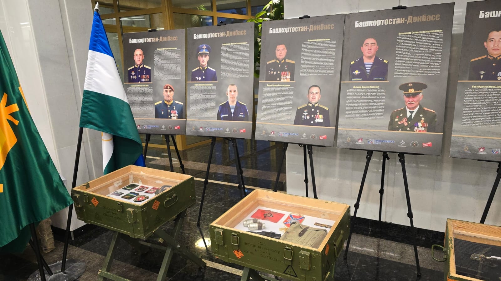 Так, выездная выставка "Россия. Донбасс. СВО" развернулась в Государственном концертном зале "Башкортостан", во время проведения Благотворительной патриотической акции "Бөрйән — башҡортомдоң рух бишеге". В мобильной экспозиции представлены уникальные экспонаты, в том числе трофейные, а также фотографии и документы, отражающие подвиги бойцов спецоперации.
