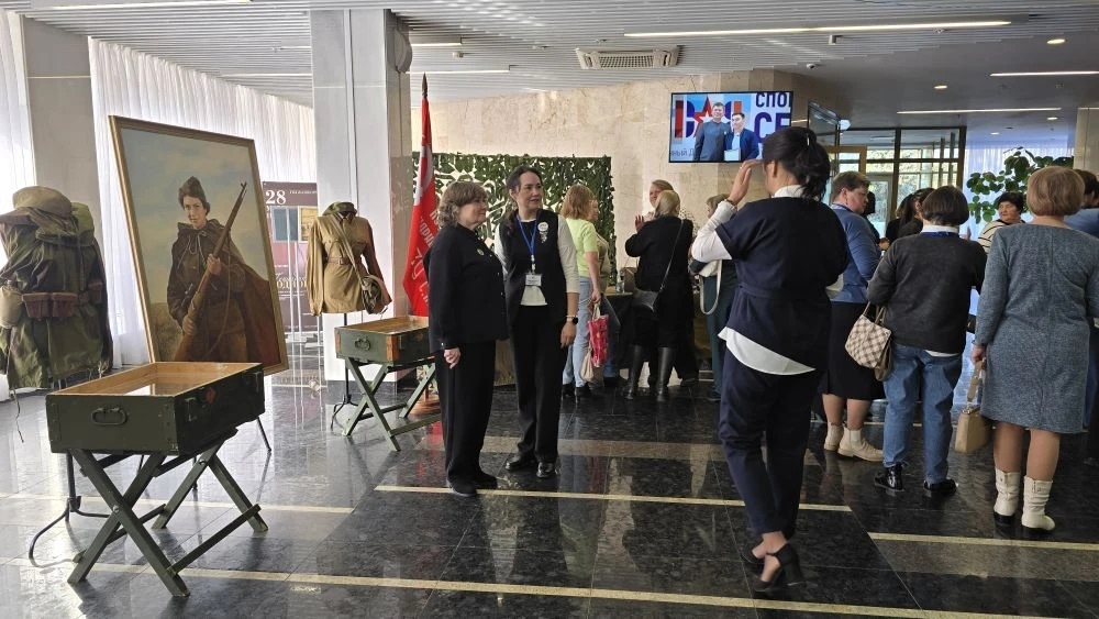 Вторая тематическая зона представлена современной историей. Она повествовала о подвиге женщин в зоне проведения специальной военной операции. Здесь представлены личные вещи бойцов, подвиг медицинских сестер на фронте, а также работа волонтерского движения республики.