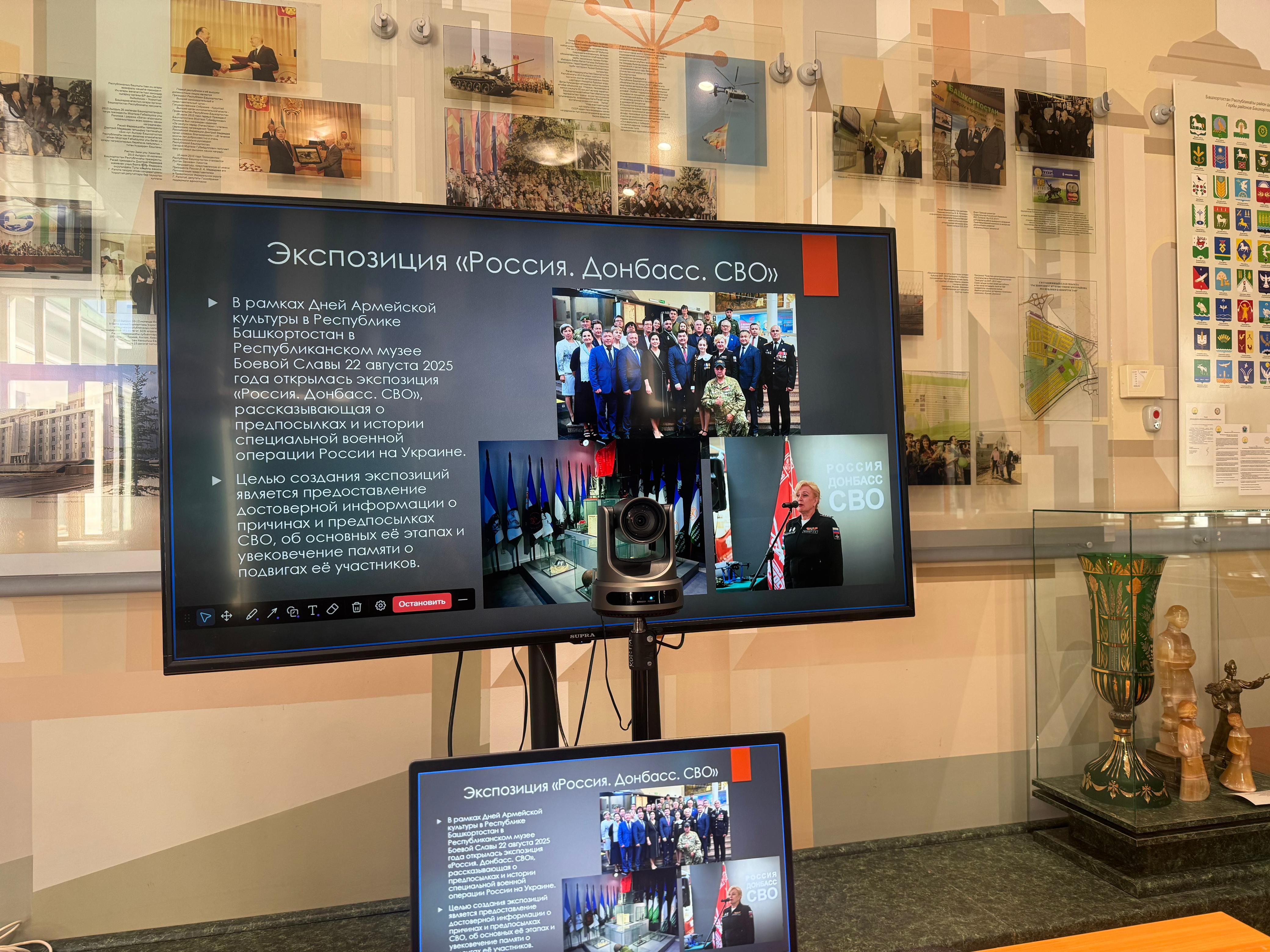 Новая экспозиция «Россия. Донбасс. СВО», открывшаяся в Республиканском музее Боевой Славы 22 августа 2025 года, предоставляет достоверную информацию о СВО и состоит из трех зон: Донбасс в 1897-1991 гг., Донбасс в 1991-2022 гг., Специальная военная операция.
