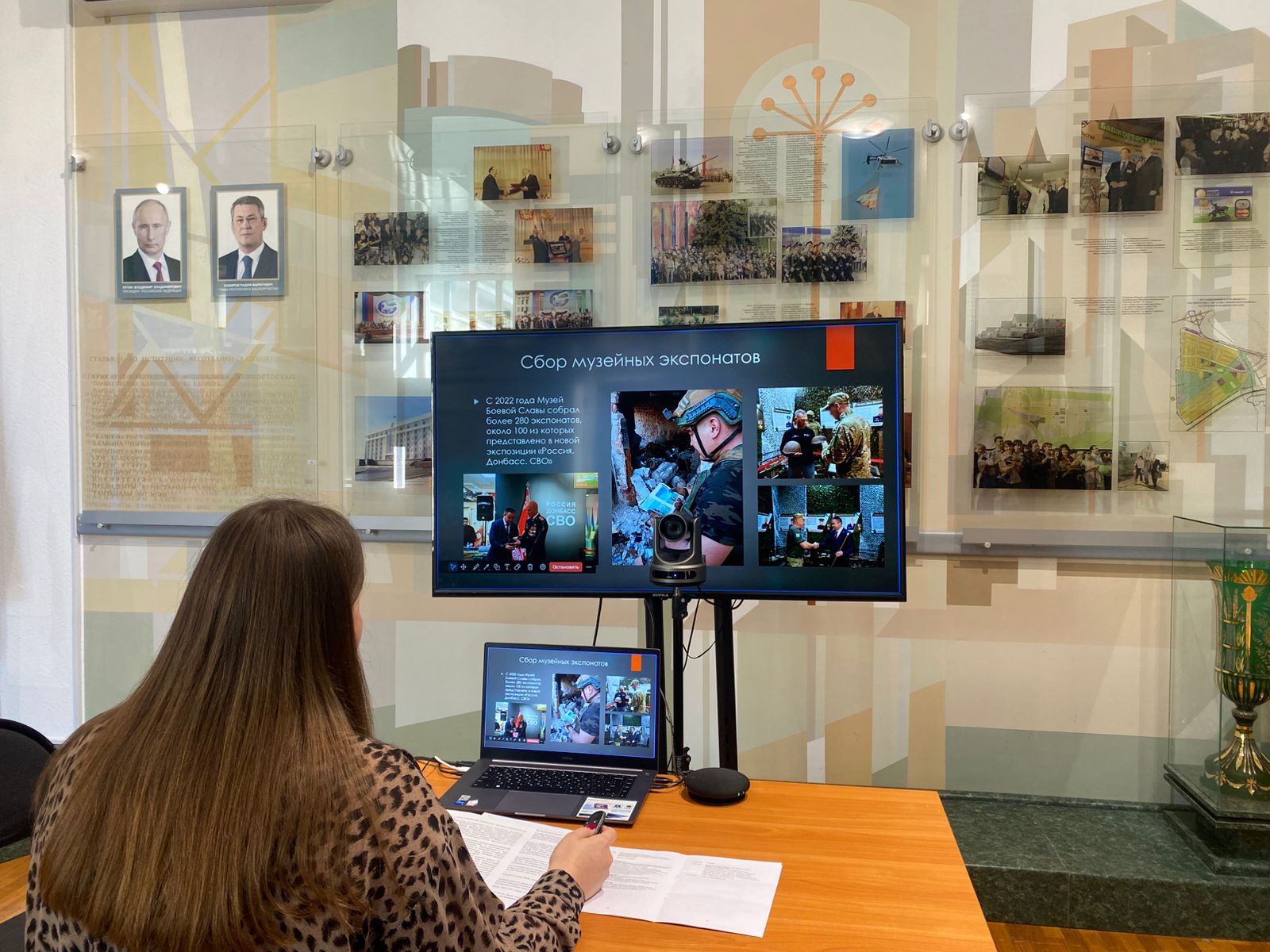 С 2022 года Республиканский музей Боевой Славы активно работает над временными выставками и сбором экспонатов, насчитывая более 280 предметов, из которых около 100 представлены в новой экспозиции. Утяев подчеркнул важность сотрудничества с различными организациями для формирования музейного фонда.