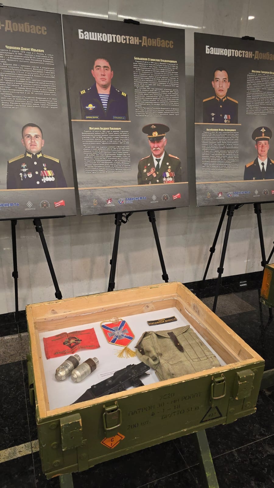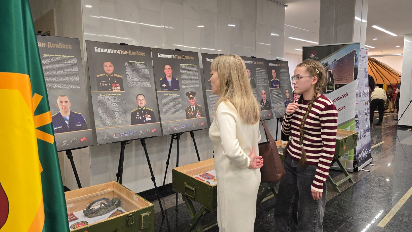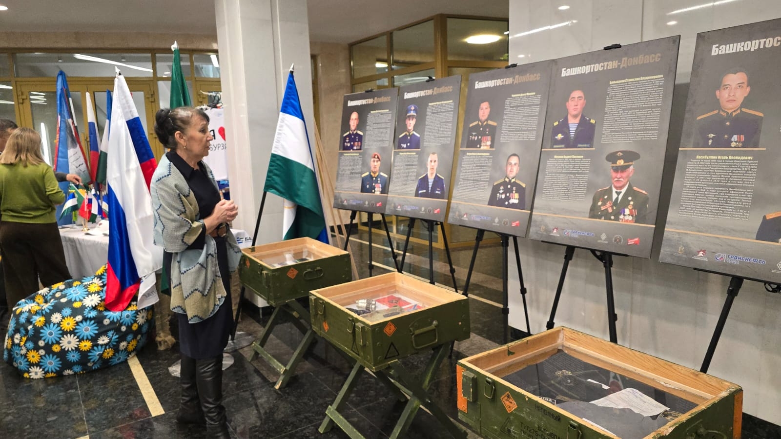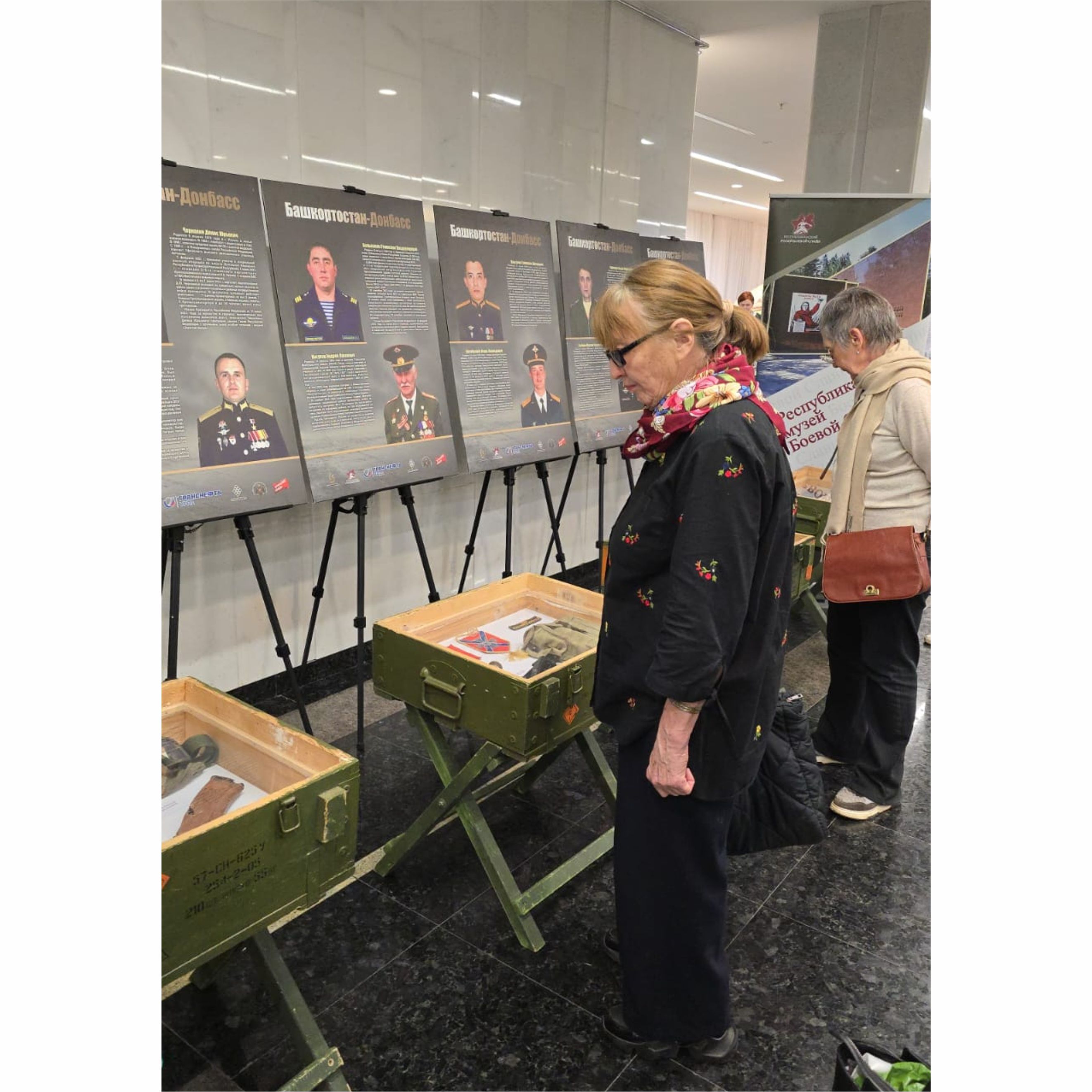 Так, выездная выставка "Россия. Донбасс. СВО" развернулась в Государственном концертном зале "Башкортостан", во время проведения Благотворительной патриотической акции "Бөрйән — башҡортомдоң рух бишеге". В мобильной экспозиции представлены уникальные экспонаты, в том числе трофейные, а также фотографии и документы, отражающие подвиги бойцов спецоперации.